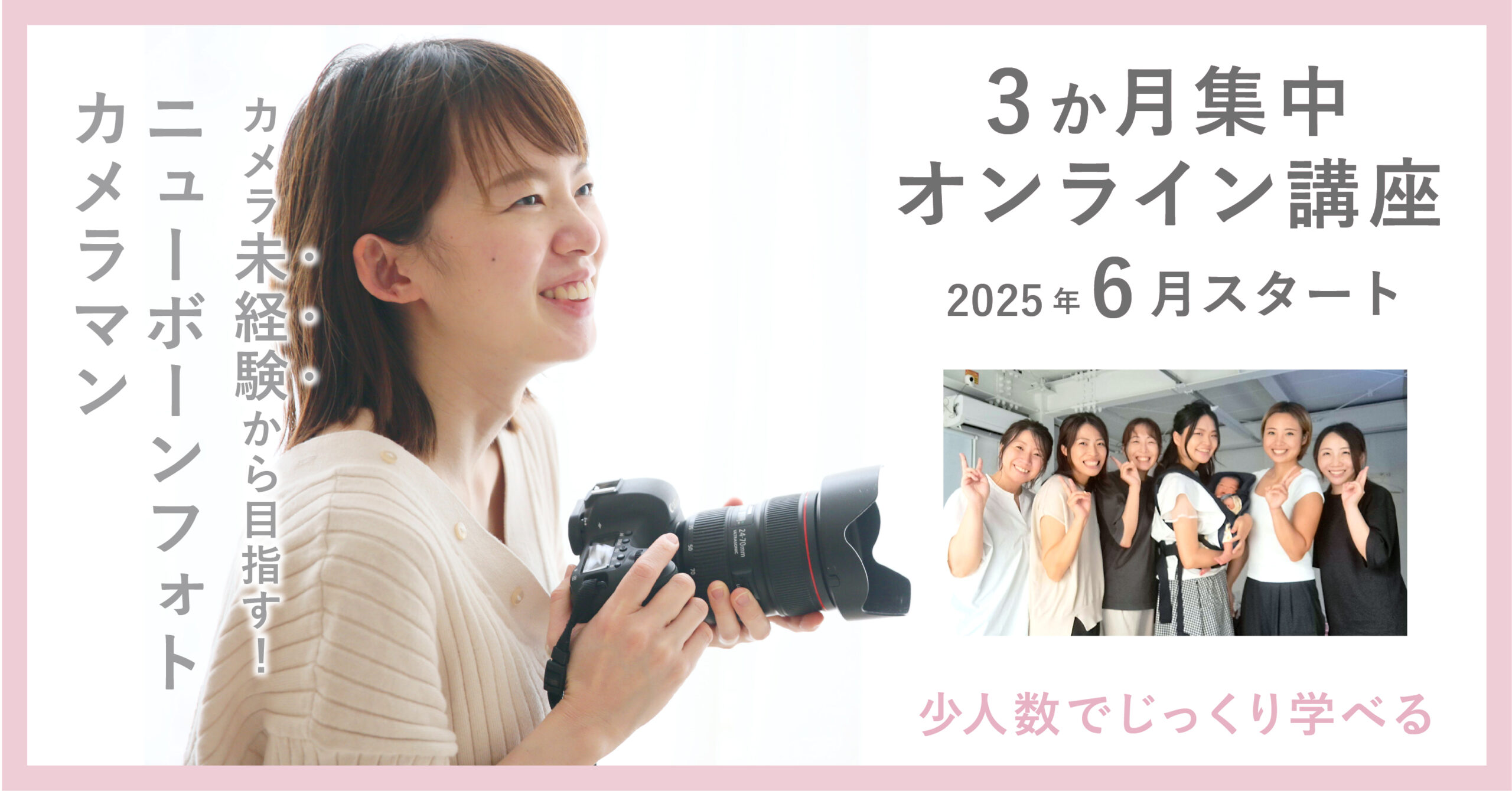 「趣味のカメラを仕事にしたいと思っていた」「子育てする毎日にも満足していたけど、私の夢を思い出せた」「助産師とのダブルワークで夢がかないました」カメラ好きなら一度は考えたことがあるのではないでしょうか?”もし、プロカメラマンになれたら…”でも、カメラ学習は終わりがないしライバルも協力…自分がいまさら目指したって無駄じゃないのかな?そんなお悩みをお持ちならぜひ一度覗いてみてください。全員最初は初心者だったカメラマンたちが次々に夢を叶えています。
