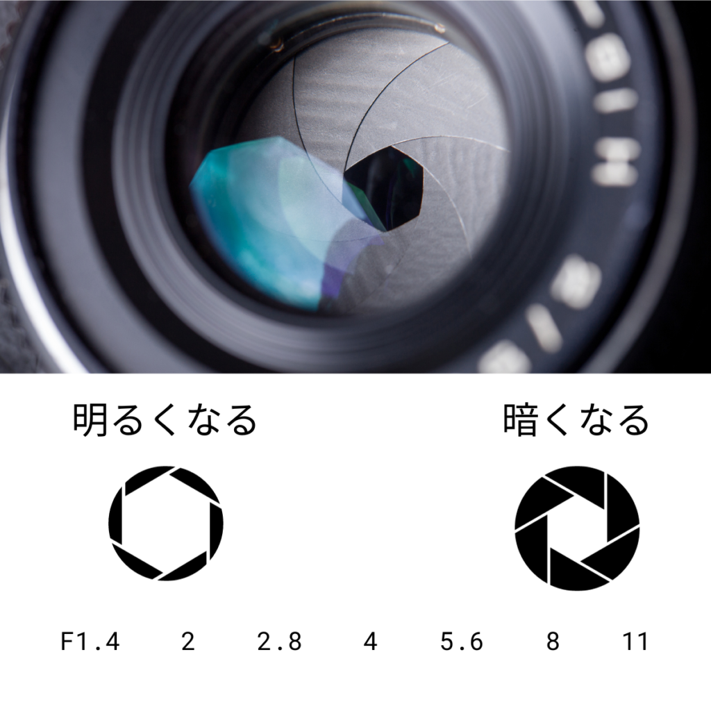 絞りはレンズの中にある開口部の大きさを指します。絞りの大きさはF値(F-number)で表され、F値が小さいほど開口部が大きくなり、レンズを通してセンサーに到達する光の量が多くなります。逆にF値が大きいと開口部は小さくなり、光の量は減少します。