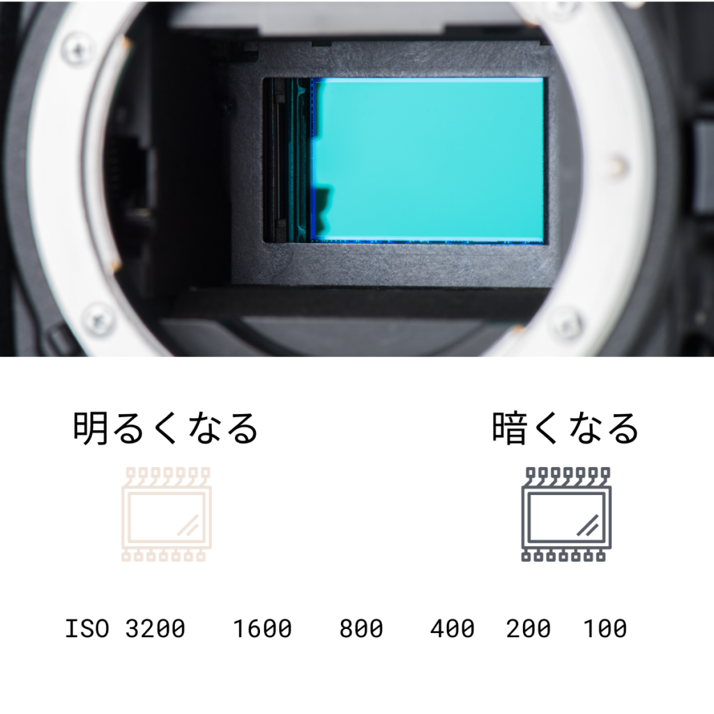 ISOはカメラのセンサー感度を指します。ISO値が高いほどセンサーの感度が上がり、少ない光でも数多くの情報を捉えることができます。しかし、ISO値を上げすぎると、写真にノイズが増えてしまう可能性があります。