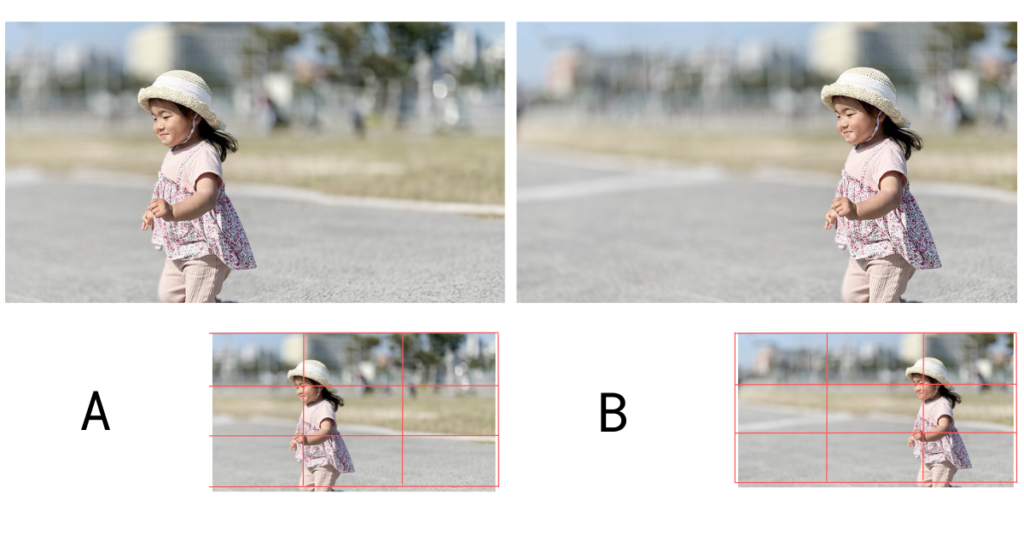 Aの写真もBの写真も3分割法で勉強した交点に ちゃんと人物を置いていますよね。