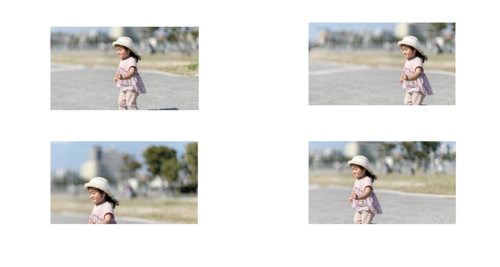 上記四つの写真は全て同じ写真ですでも人物のレイアウトが違います。構図が違うんですね
