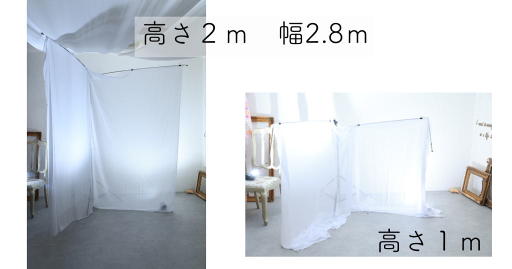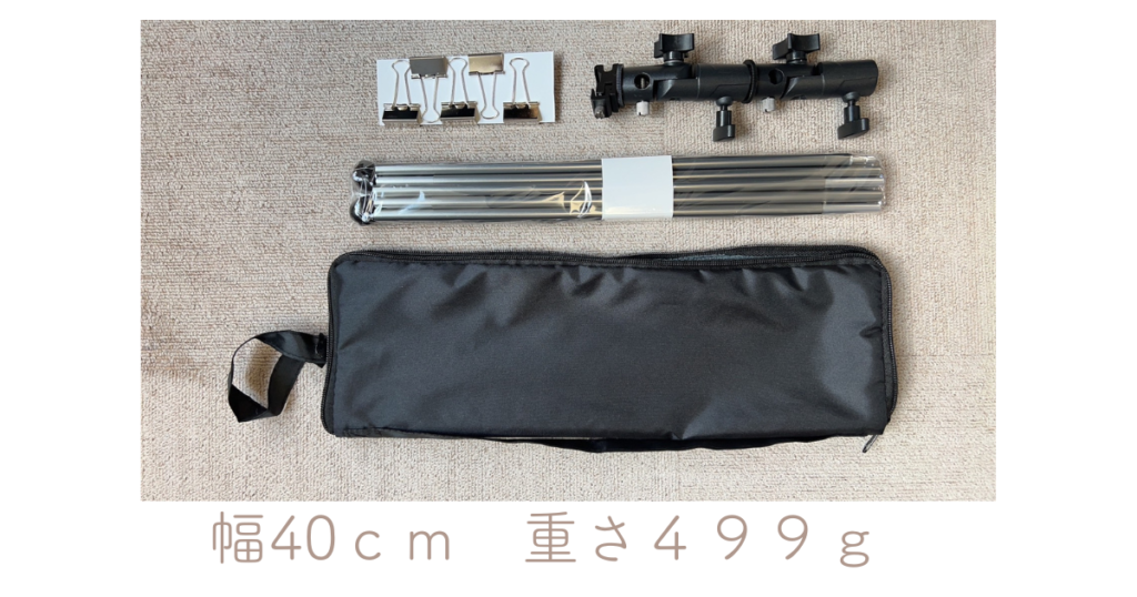 1つの目の特徴はとにかく軽いということです。 三脚 1本で背景を作るのでどんなところでも場所を選ばず 大きな背景を作ることができます